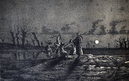 « Elles battent et tordent incessamment quelque objet qui ressemble à du linge mouillé, mais qui, vu de près, n’est qu’un cadavre d’enfant ».