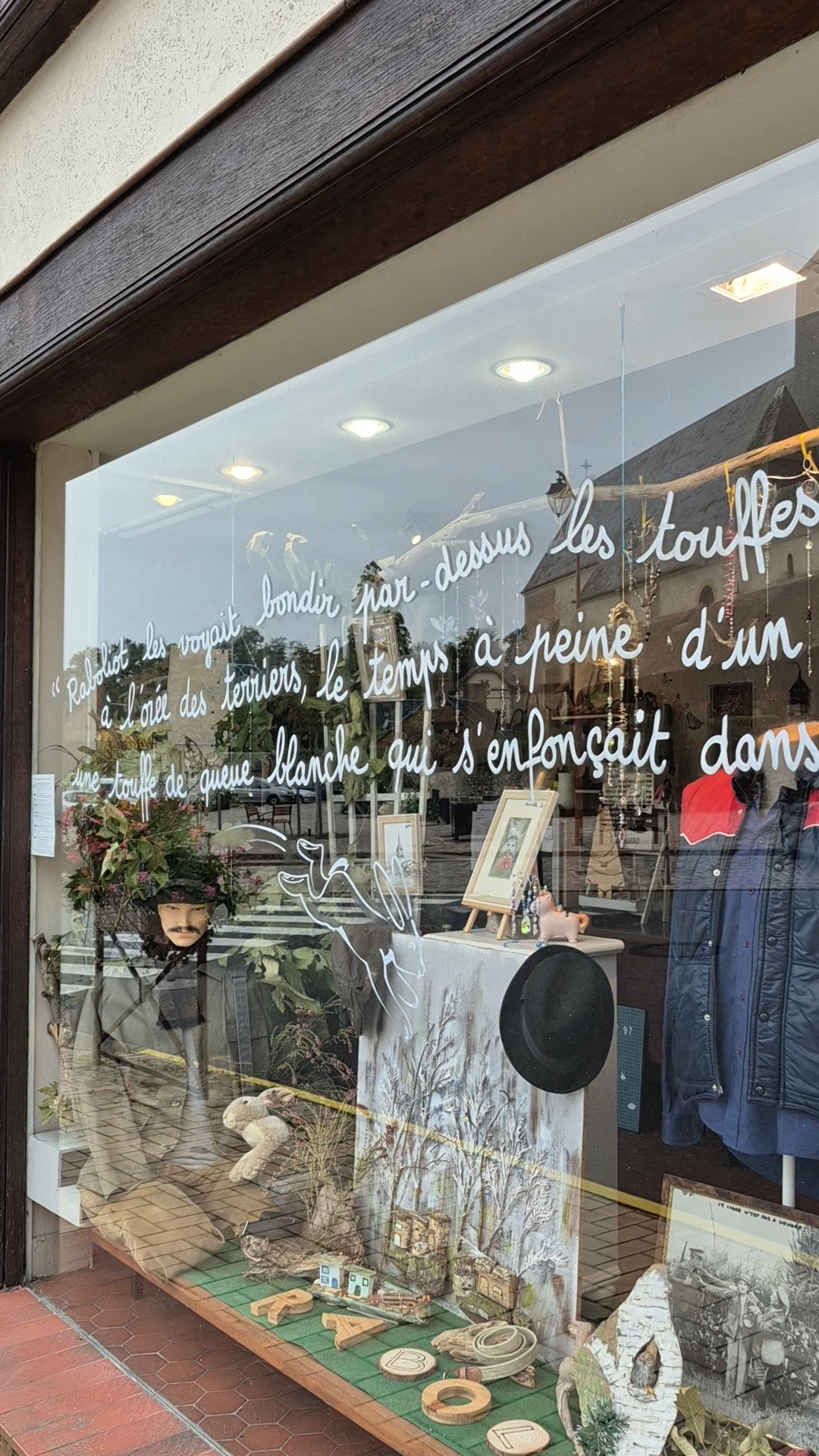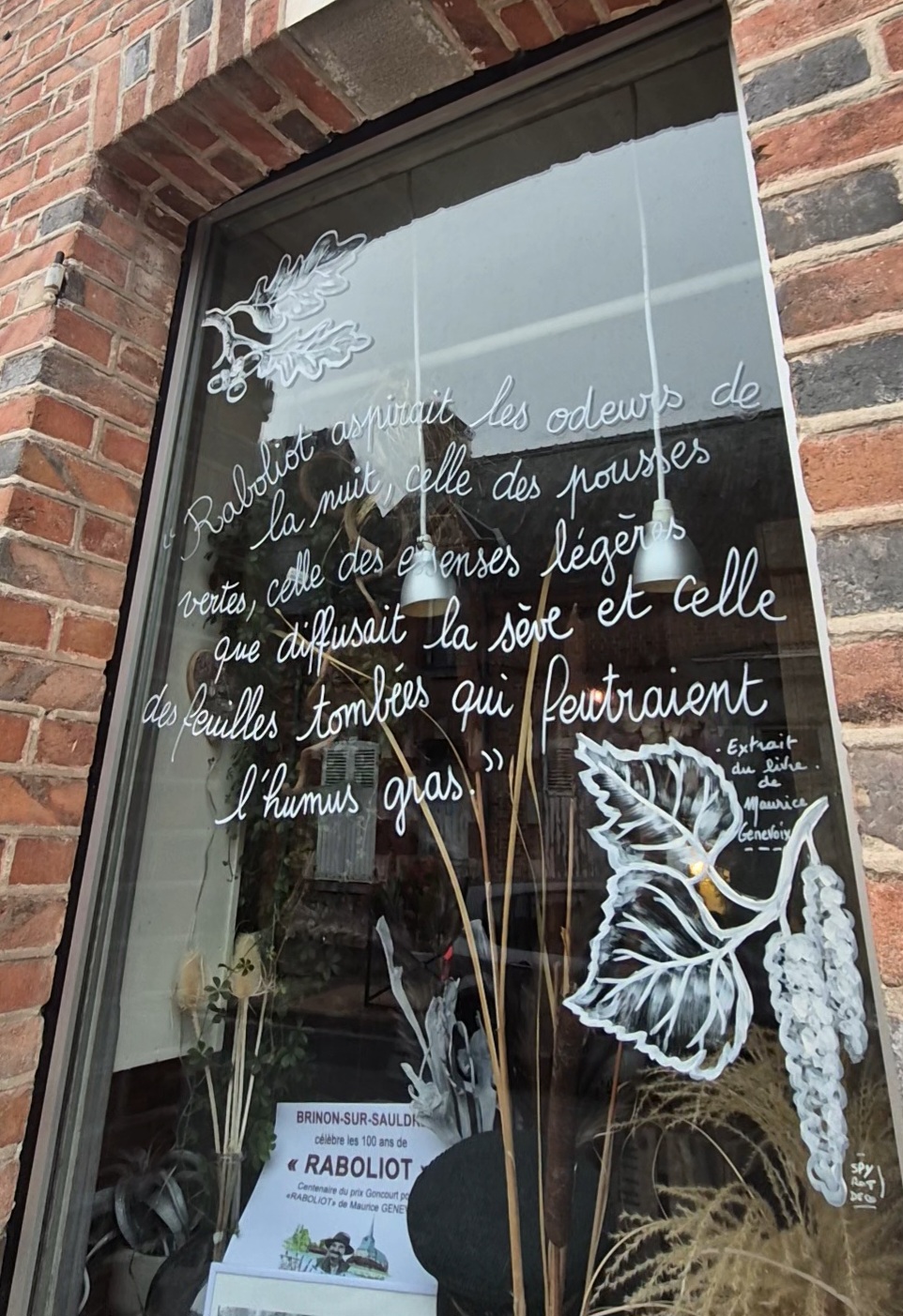 Vitrines animées dans le village : les commerçants décorent leurs boutiques avec des extraits, des citations, et des touches visuelles rappelant Raboliot.