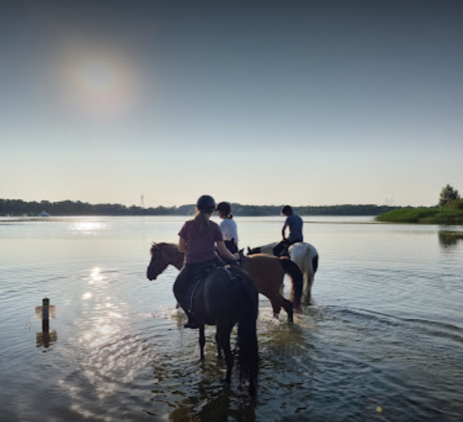 À partir de 30€ : balade à cheval (1h, 1h30, 2h ou 3h) du débutant au confirmé avec supplément baignade à cheval à l'étang du Puits. À partir de 8 ans. Sous réservation.