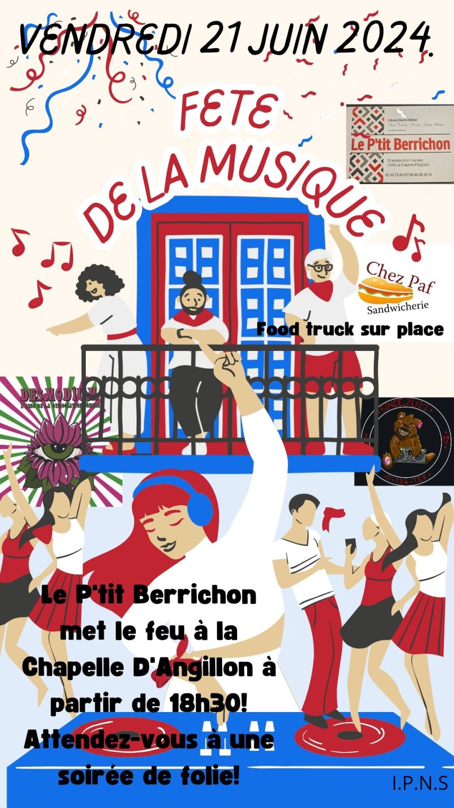 Fête de la musique au bar le P'tit Berrichon de la Chapelle d'Angillon dès 18h30.