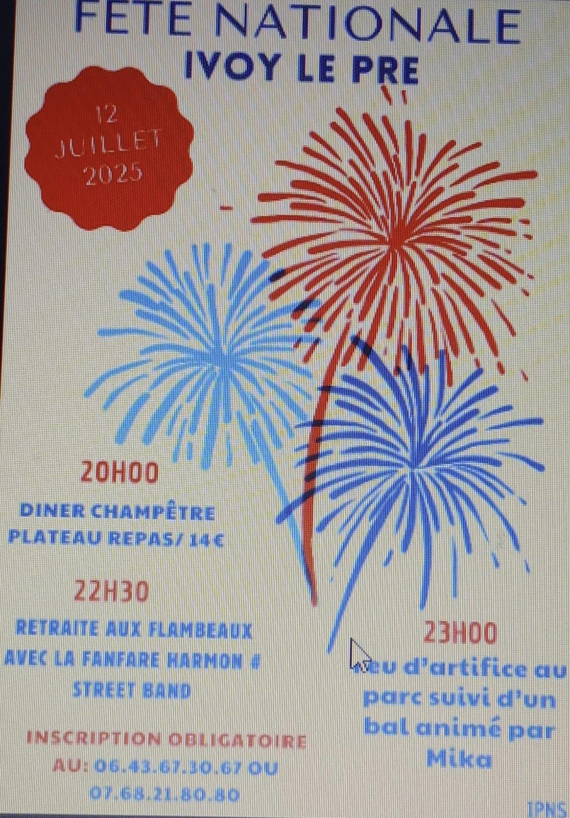 - 23h : feu d'artifice offert par la municipalité (au parc, route d'Henrichemont) suivi d'un bal