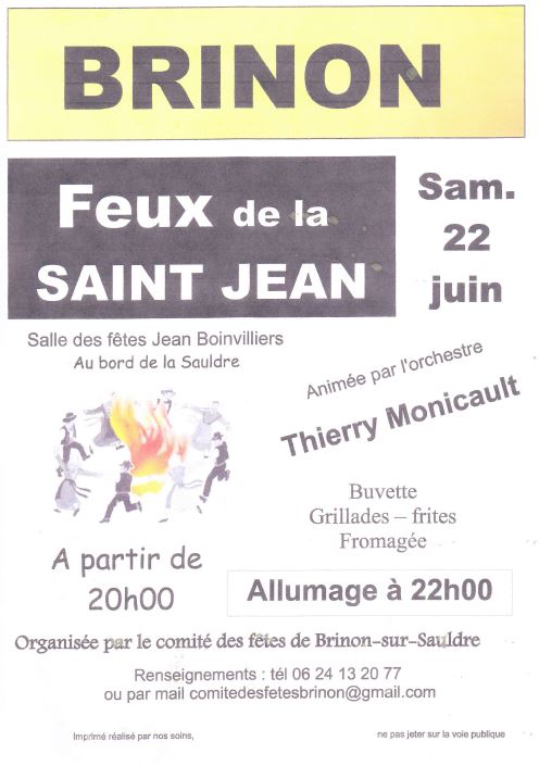 Feux de la Saint Jean au bord de la Sauldre - Buvette, grillades, frites, fromages - Allumage à 22h