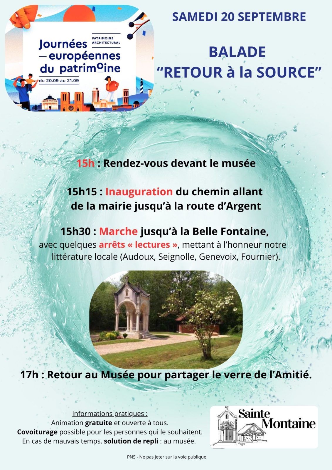 15h30 : Marche jusqu'à la Belle Fontaine avec quelques arrêts lectures mettant à l'honneur notre littérature locale (Audoux, Seignolle, Genevoix, Fournier)