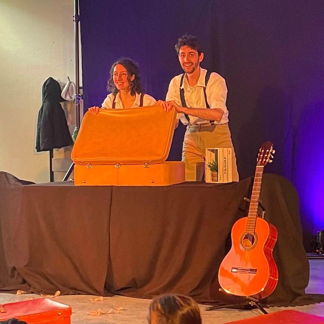 C’est à travers un butaï (petit théatre de bois présentant des illustrations) qu'ils content des histoires d’ici et d’ailleurs tout en humour et poésie, accompagnées de musiques, de chants et de surprises !