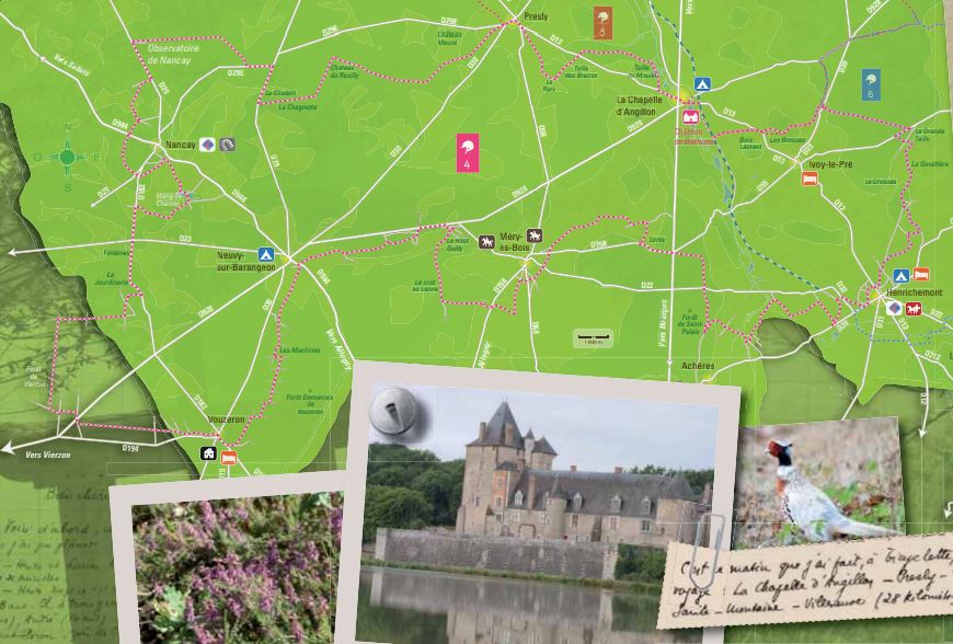 Departing from La Chapelle-d'Angillon (campsite and reception) or Ivoy-le-Pré (guest rooms) head east in the direction of Henrichemont.
