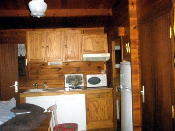 Chalet of 35 m² with covered terrace that can accommodate 5 to 7 people. and comprising: living room (sofa bed 140, TV) with fitted kitchen area (microwave), 2 bedrooms (1 with 1 double bed and 1 with 1 double bed and 1 single bed), shower room, wc, heating electric, garden furniture, deckchairs, barbecue, swings - Shared swimming pool, reception room, shared washing machine, baby bed possible - Open from 01/04 to 01/11.