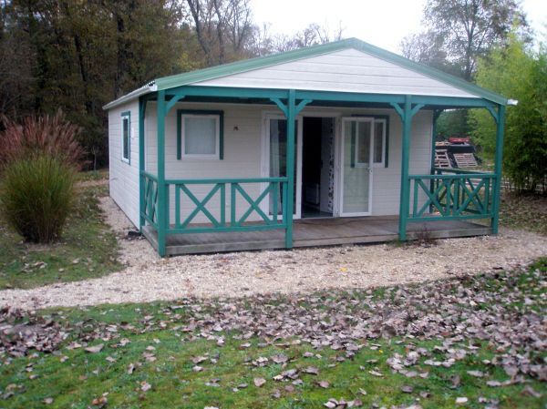 Chalet of 35 m² with a covered terrace that can accommodate 6 people. and comprising: living room (TV) with equipped kitchen area (microwave), 3 bedrooms (1 with 1 double bed, 1 with 2 single beds and 1 with 2 single bunk beds), shower room, wc, electric heating, garden furniture, deckchairs, barbecue, swing - Shared swimming pool, reception room, shared washing machine, baby cot available - Open from 01/04 to 01/11.