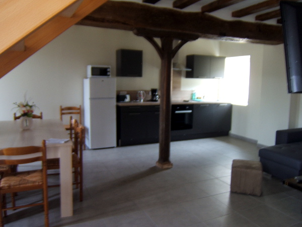 80 m²: "L'Entre Deux" is one of 3 lodgings fitted out in a contemporary style in this very old farm house on a large forest property with pond (fishing possible) - Wooden terrace with garden furniture and barbecue - Bicycle storage room.