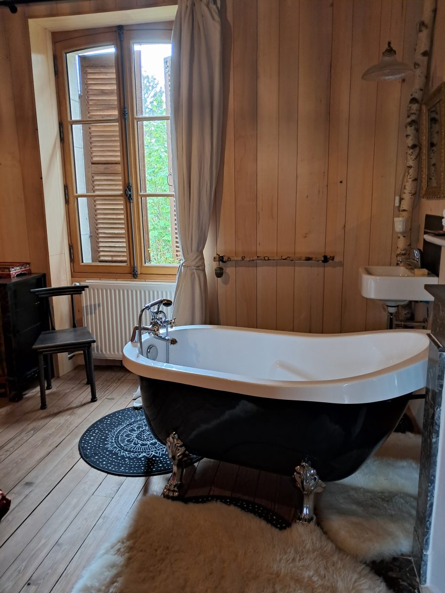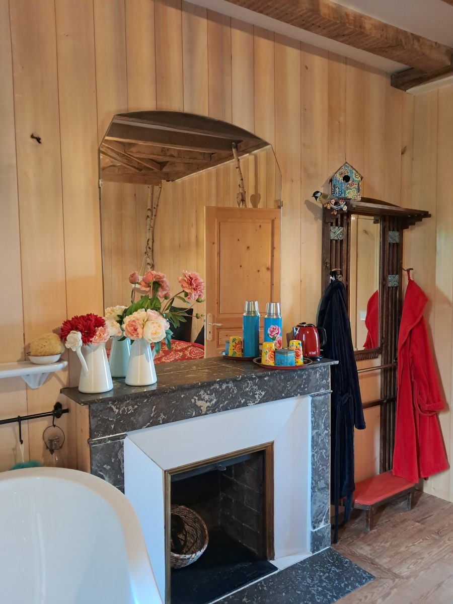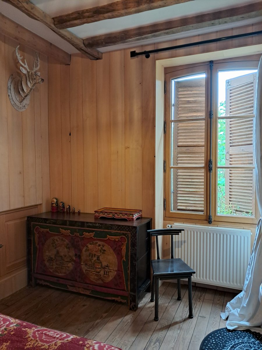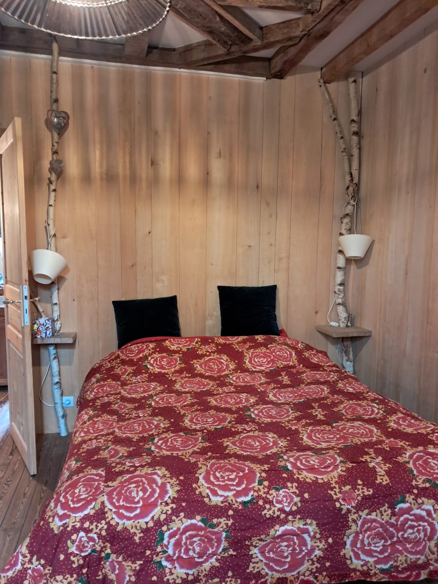 Moroccan-inspired guest room with access to the garden, featuring a separate shower room with toilet. Welcome tray, organic and local breakfast served on the terrace in fine weather or in the large dining room. Organic and gourmet table d'hôtes available on reservation. Access to the owners' large garden and swimming pool. Bathrobes and pool towels provided. Covered garage for motorcyclists. Hiking and mountain-biking trails from the gîte, bicycles for hire. In summer, swimming pool from 10 a.m. to 5:30 p.m. SPA, sauna on reservation (18 euros)