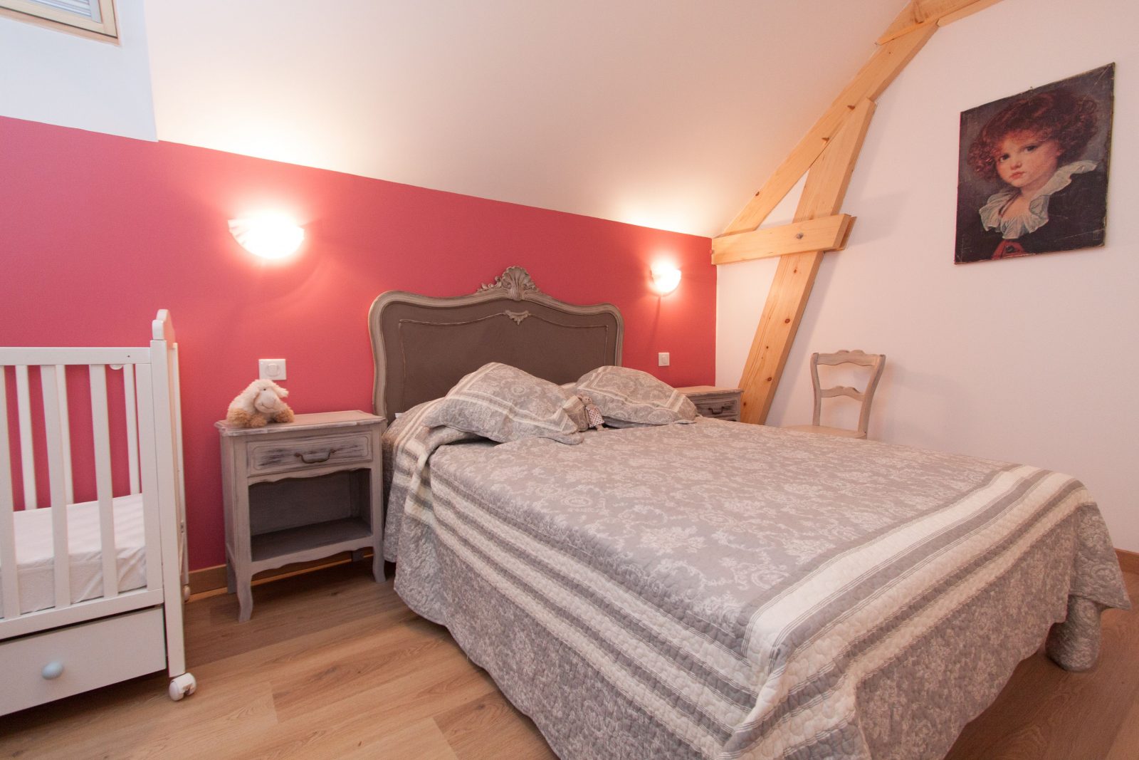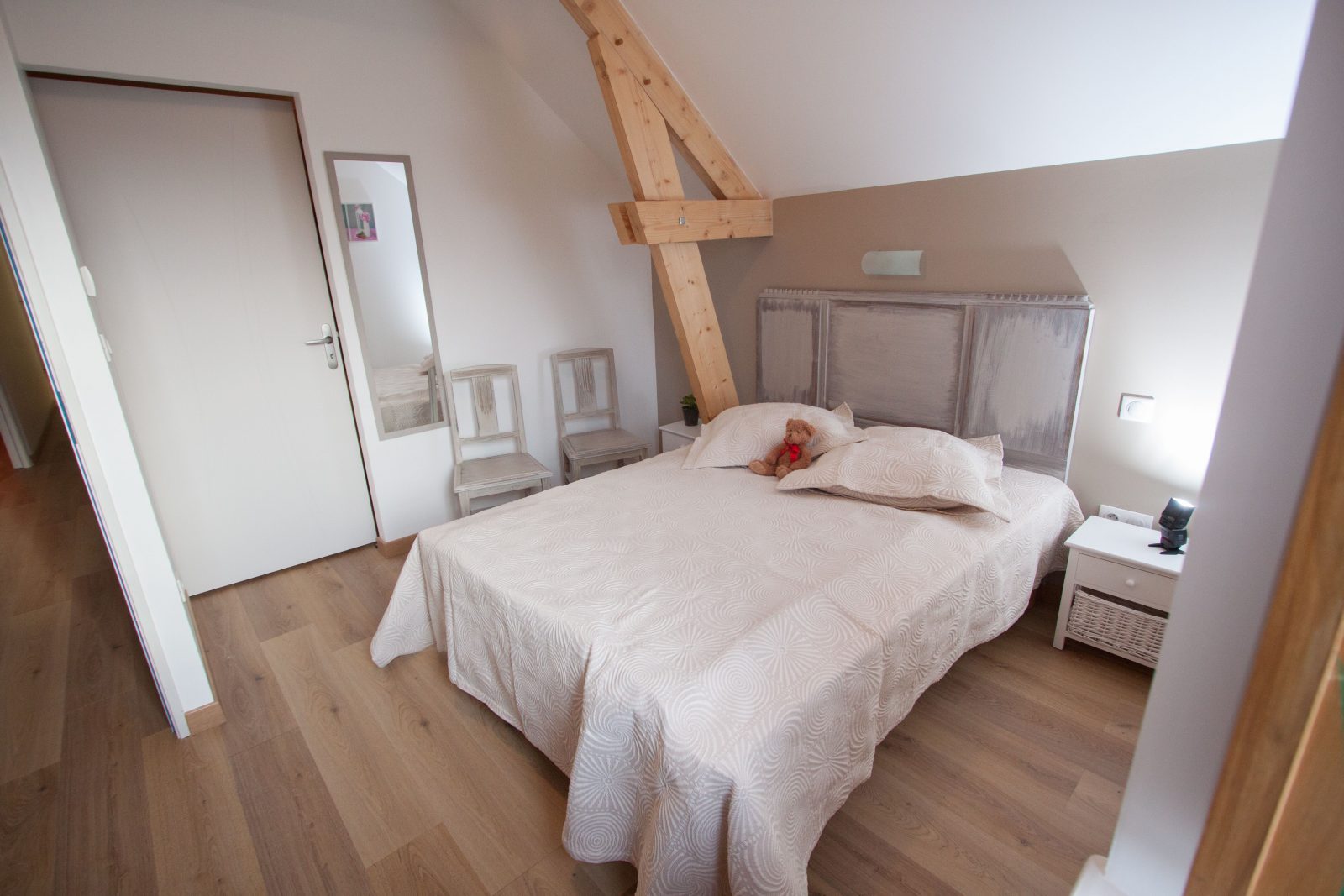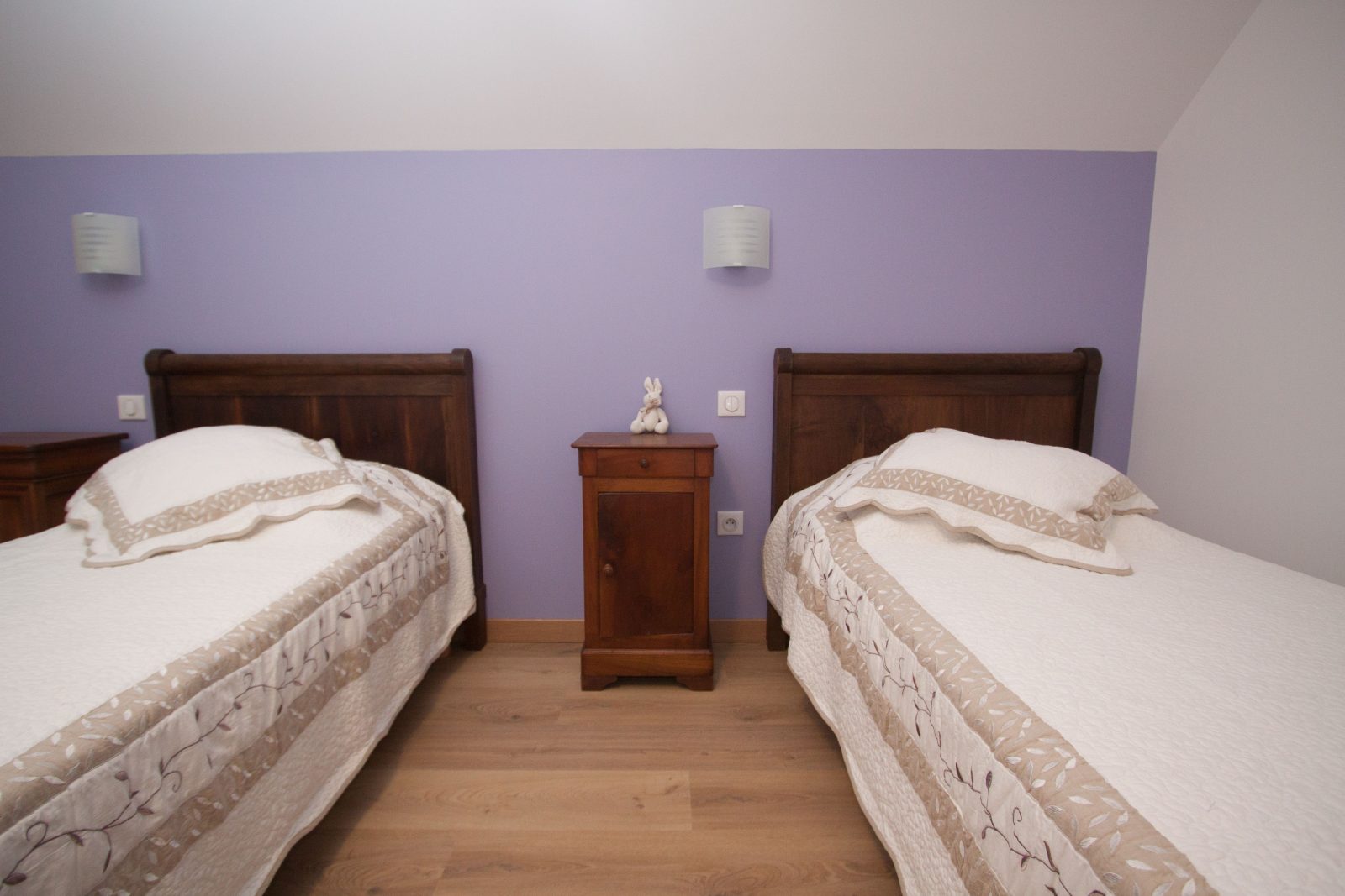 Ground floor: Entrance - Equipped kitchen (freezer compartment, microwave) open to dining / living room - 1 bedroom (160 bed) accessible to people with reduced mobility - 1 shower room - separate wc - Upstairs: 2 bedrooms (1 with double bed and 1 with 2 single beds) and 2 suites (1 with 1 double bed and 2 single beds and 1 with 2 double beds) - 2 shower rooms - 1 wc - Garden furniture, porch , bowling green, ping-pong - Wood stove - Electric central heating - Basic necessities - Possibility to rent a barn for your receptions (170 people maximum).