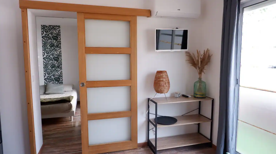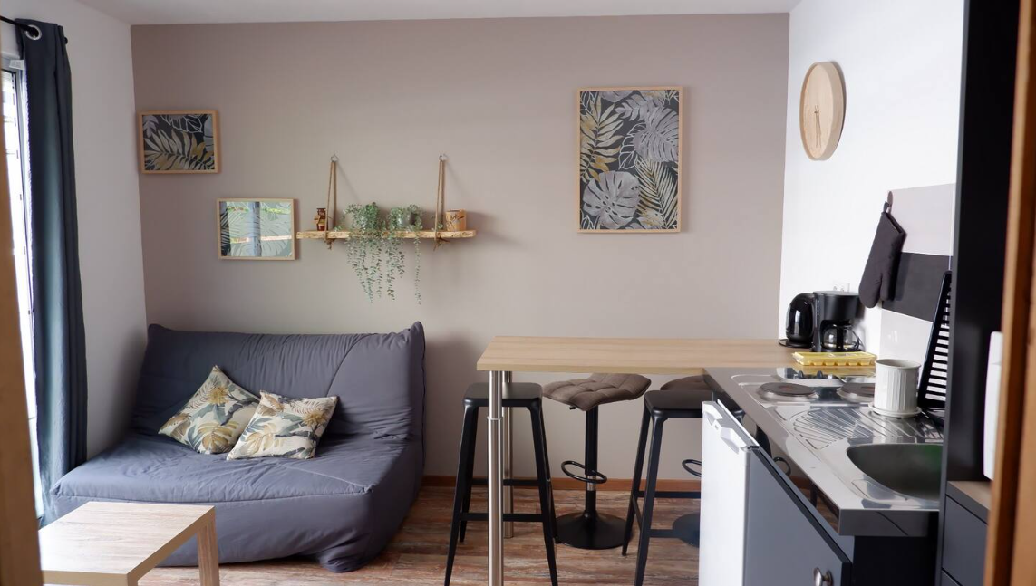 Le salon spacieux s'ouvre sur une cuisine entièrement équipée. Vous y trouverez également un canapé convertible 2 places, parfait pour se détendre après une journée bien remplie. La chambre, cosy et confortable, est équipée d’un lit de 140 cm et d’un dressing pour ranger vos affaires personnelles. La salle de bains attenante dispose d’une vasque, de WC et d’une douche. Pour un confort optimal, le logement est également équipé d’une climatisation réversible.