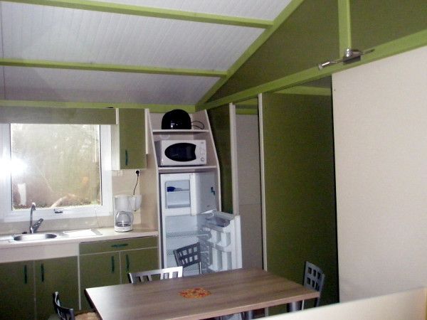 Chalet de 35 m², implanté dans les bois, avec terrasse couverte pouvant accueillir 6 pers. et comprenant : séjour (TV) avec coin cuisine équipé (micro-ondes), 3 chambres (1 avec 1 lit 140, 1 avec 2 lits 90 et 1 avec 2 lits 90), salle d'eau, wc, chauffage électrique, salon de jardin, transats, barbecue, portique - Piscine commune, salle d'accueil, lave-linge commun, possibilité lit bébé - Ouvert du 01/04 au 01/11.