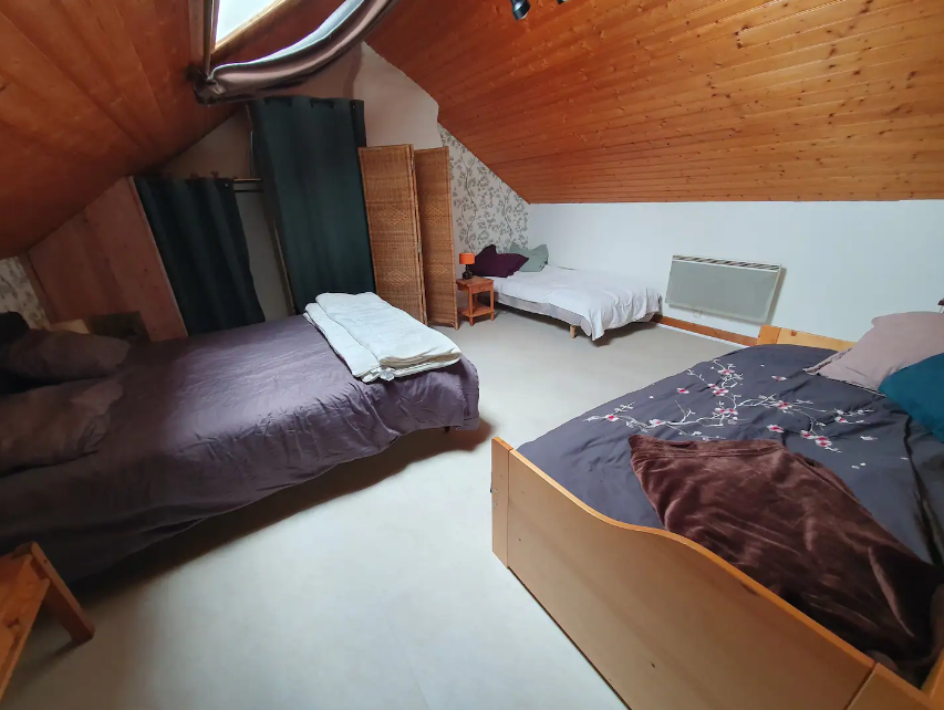 Reposez-vous dans une chambre spacieuse et confortable, dotée d'un lit double avec une literie de qualité. Il y a aussi deux lits simples, séparés d'un paravent intérieur. La décoration douce et apaisante invite à la détente après une journée de découvertes.