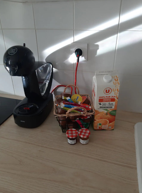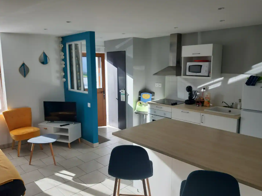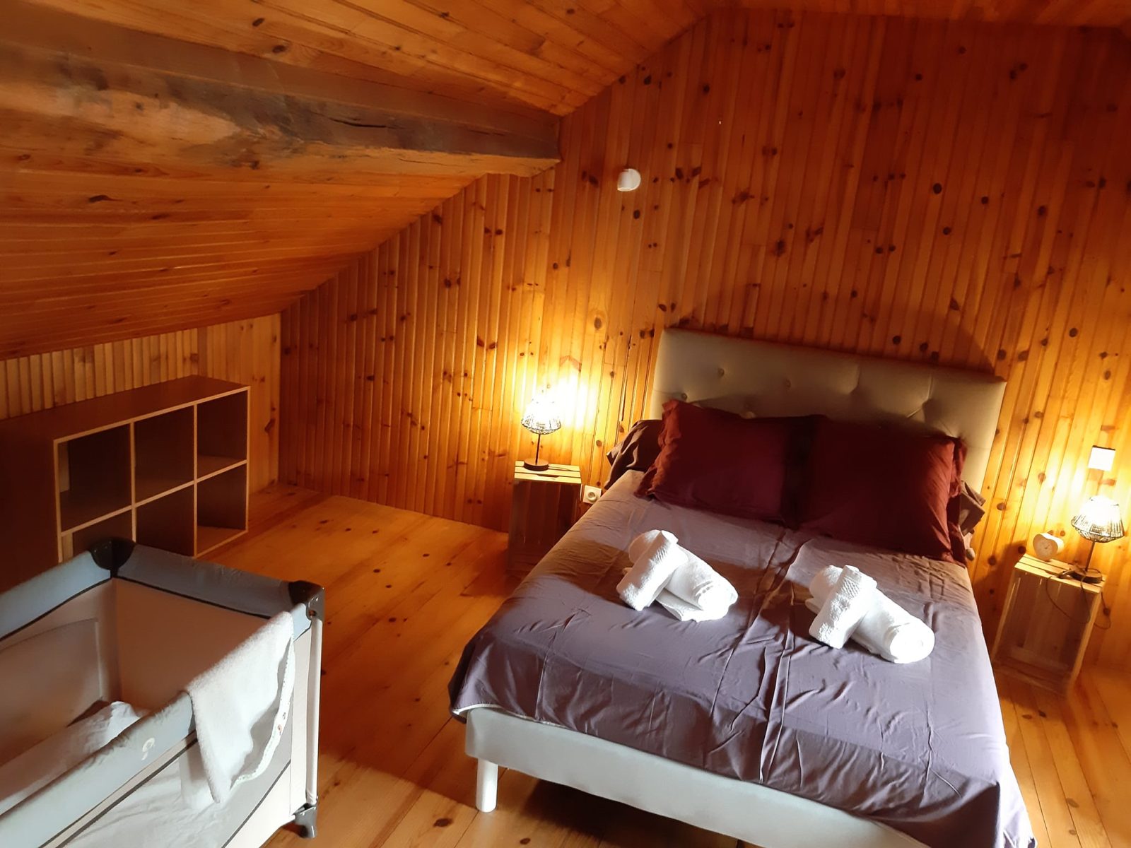 À l’étage, la chambre spacieuse, équipée d’un lit double, vous offre un cadre apaisant pour une bonne nuit de sommeil. Le linge de lit et les draps de bain sont fournis, et un kit de petit-déjeuner vous est offert à votre arrivée pour bien commencer la journée.