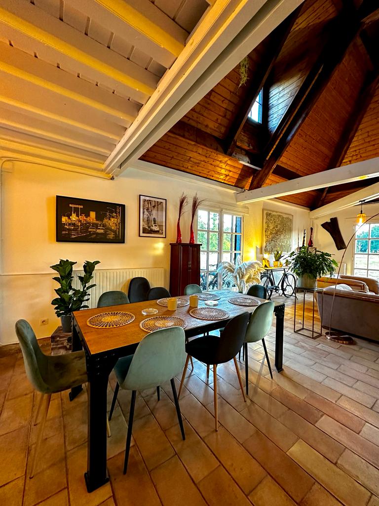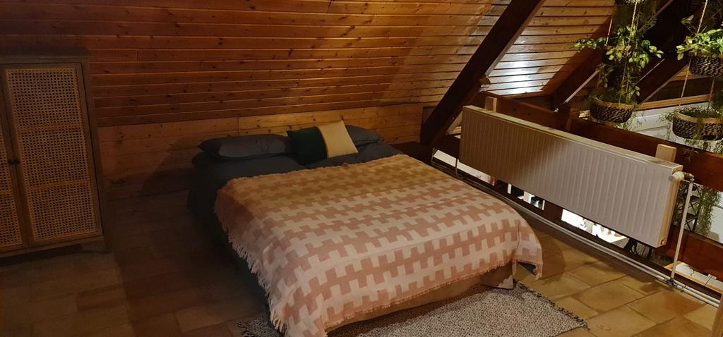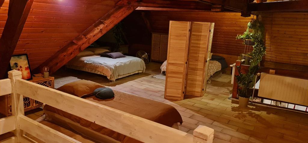 A l’étage, un grand espace de nuit – « Le Dortoir » – avec 2 lits doubles et 3 lits simples.