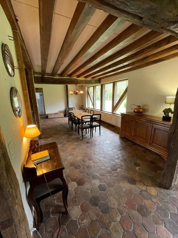 La maison, d'une surface de 170 m², peut accueillir jusqu'à 12 personnes dans les 5 chambres mises à disposition. Vous y trouverez un salon cosy avec une grande cheminée, une salle-à-manger et une cuisine équipée. En plus du gîte, le domaine vous met à disposition une piscine, un étang, un box pour chevaux/poney ainsi qu'une forêt privée parfaite pour de petites randonnées.