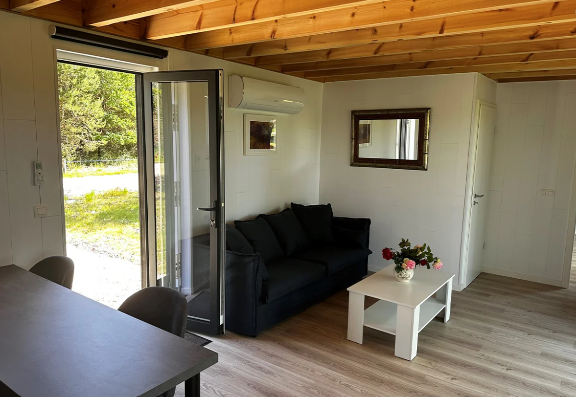 Chaque Lodge de 50 m² est équipé d’une terrasse privative, d’un espace nuit, cuisine et salon. L’intérieur du lodge propose un design épuré aux couleurs naturelles. Baigné de lumière grâce aux grandes baies vitrées, votre sérénité est assurée pendant votre séjour à la Détente des Étoiles.