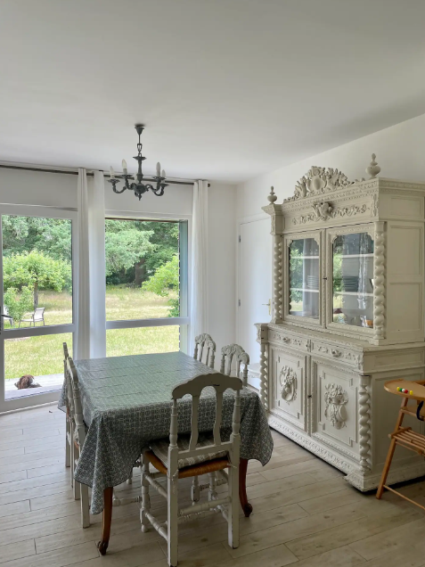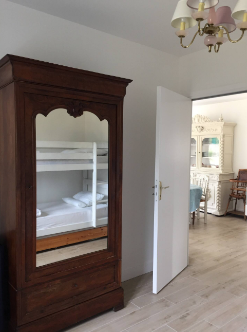 Maison en bois très lumineuse et spacieuse au milieu d'un verger de pommiers, pruniers, cerisiers, pêchers. Très calme et reposant, un havre de paix pour une pause nature. La maison se compose d’une grande pièce à vivre lumineuse salon - salle à manger- cuisine, 2 chambres (chambre 1 : 1 lit 160 ou possibilité de 2 lits 80 - chambre 2 : 2 lits superposés + lit tiroir) une salle de douche italienne, Wc séparé. Gite pour 5 personnes maximum, pas de voyageurs supplémentaires.