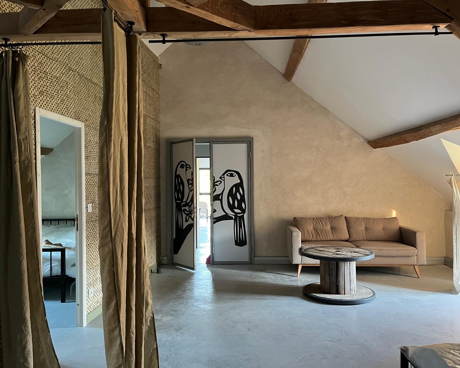 À l'étage, la suite Havane de 47m² avec sa salle de bain privative. Elle idéale pour accueillir un couple et un enfant. La chambre Oiseaux, un dortoir de 50m² avec quatre lits simples dans des coins nuit et une chambre cloisonnée pour un couple.