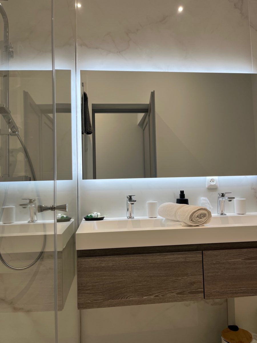 Chaque chambre dispose de sa salle de bain privative avec WC, d’un lit double 160x200, avec linge de lit et serviettes fournis, pour un confort optimal.