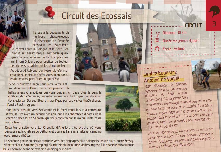 Au départ d’Aubigny-sur-Nère (plateforme équestre), le circuit s’offre aussi bien dans les deux sens, par l’Ouest ou par l’Est.