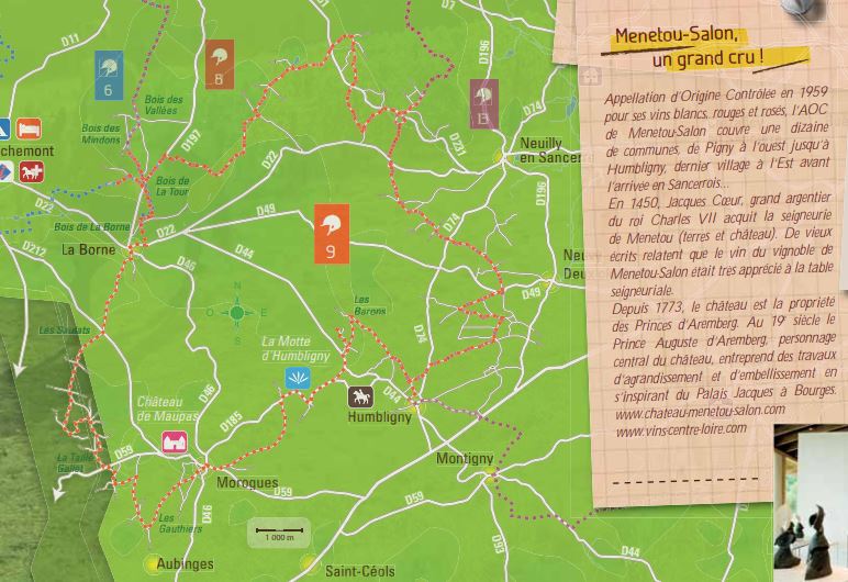 Prenez ensuite le départ vers le Nord, secteur très boisé jusqu’à Neuilly en Sancerre où les paysages s’ouvrent vers le Sancerrois.