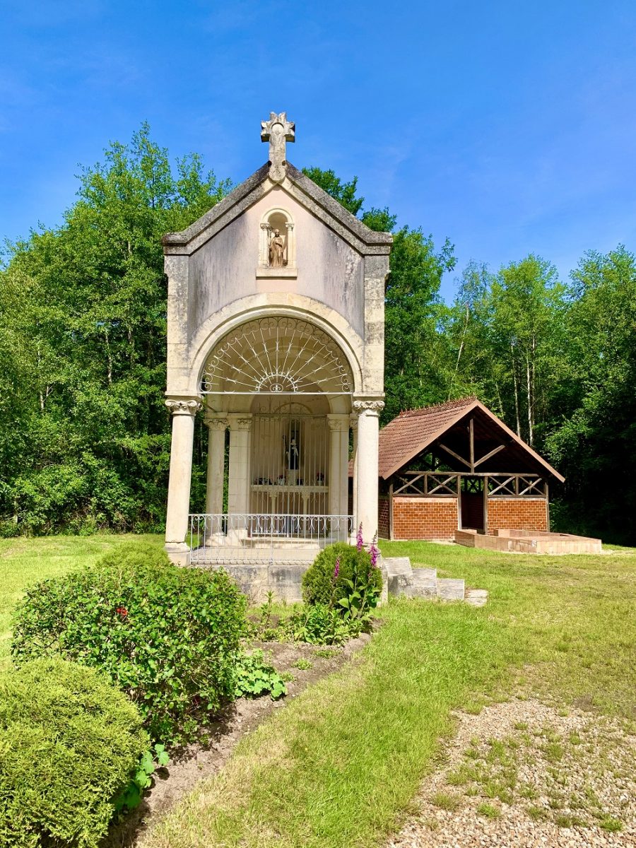 Située en pleine forêt, à quelques centaines de mètres de la route, il faut suivre le bruit de l’eau qui court pour trouver celle qui a obtenu le Prix Régional du Site Remarquable en 2020 : la Belle Fontaine. Cette source entourée d’une chapelle et d’un lavoir du XIXème siècle serait miraculeuse ! Elle soignerait des rhumatismes, guérirait l’urticaire ou aiderait les couples à avoir des enfants… Des pèlerins s’y retrouvent chaque année le lundi de Pentecôte.