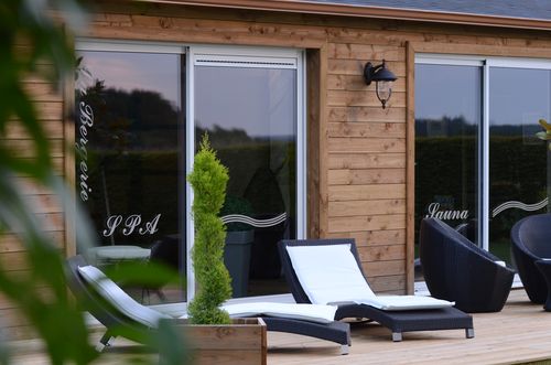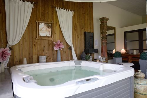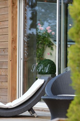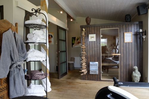 Dans un nouveau bâtiment alliant contemporain et rustique ouvert par de larges baies vitrées sur la nature, vous pourrez vous prélasser dans les bains bouillonnants du spa, profiter de la chaleur du sauna, vous entraîner sur les appareils de "training", vous détendre par un "modelage du corps ayurvédique" et vous reposer sur la terrasse solarium.